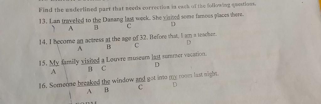 → Diễn tả sự việc trong quá khứ ⇒ thì QKĐ: S + V2/ed