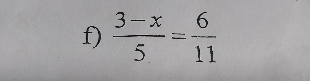 `frac{3 - x}{5} = 6/11`
