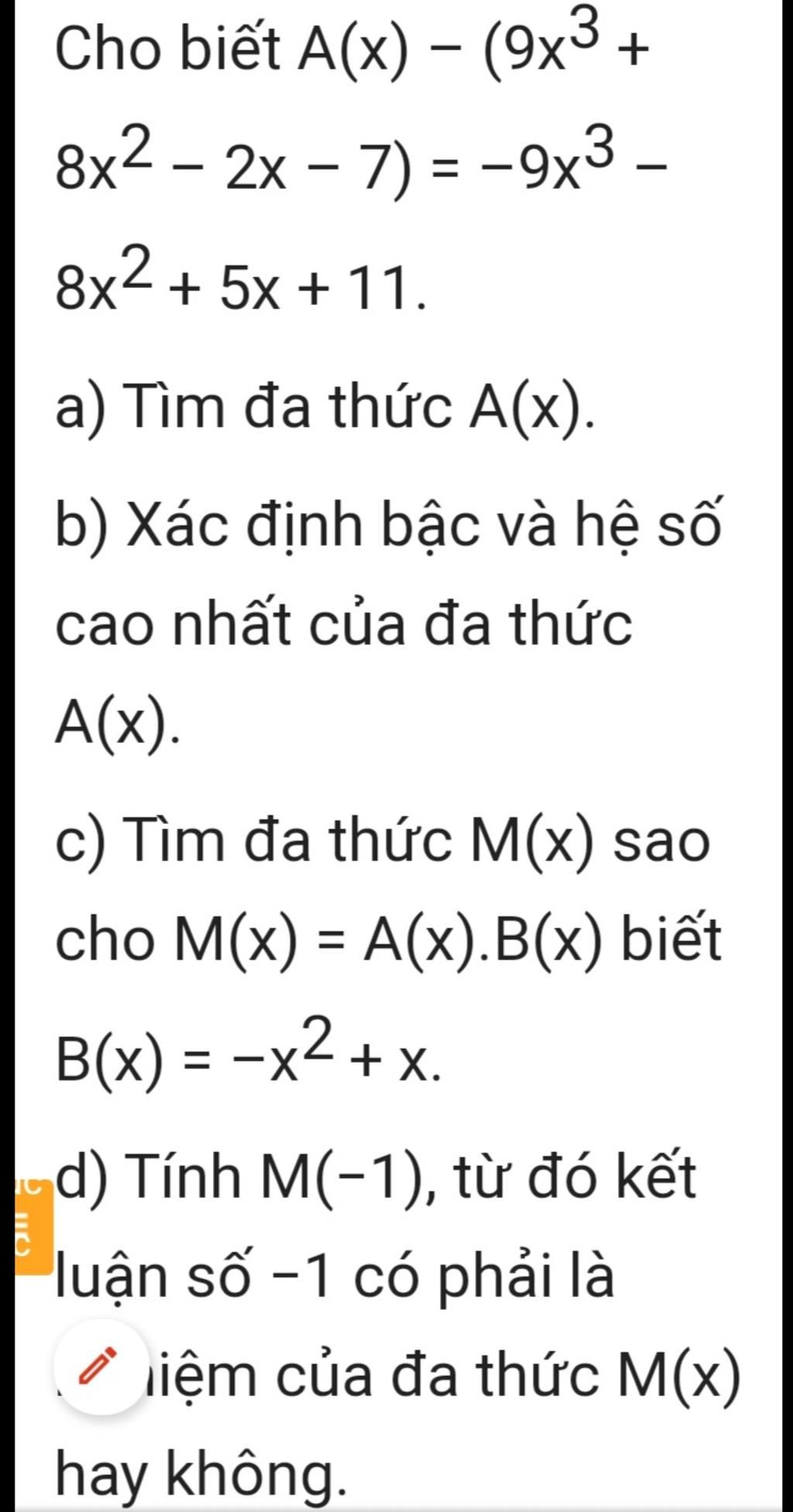 Cho biết A(x) − (9x3 +