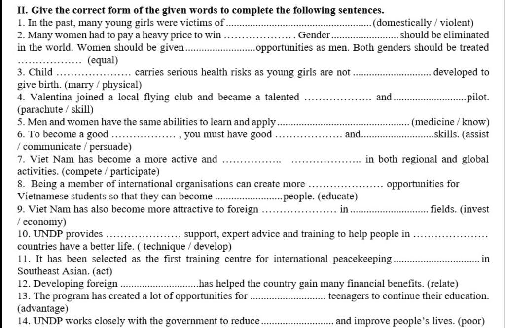 II. Give the correct form of the given words to complete the following sentences.