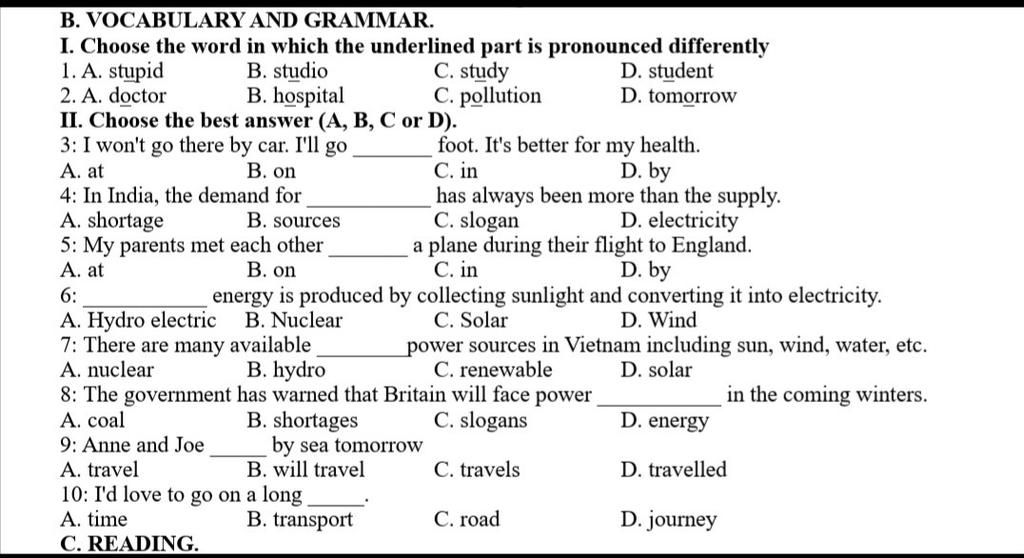 $I.$ Choose the word in which the underlined part is pronounced differently.