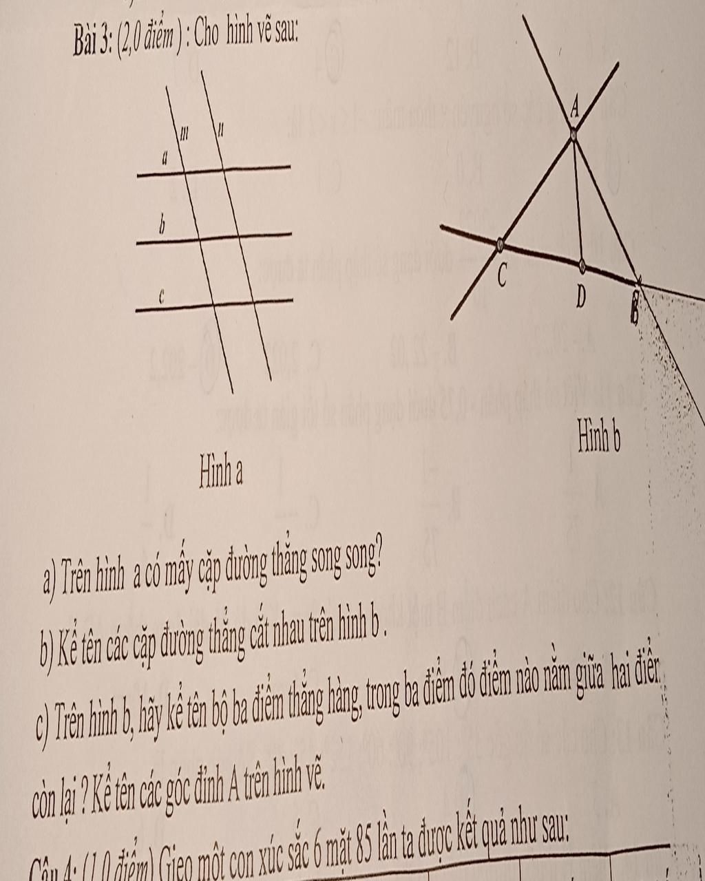 C trên hình b hãy kể tên bộ ba điểm thẳng hàng trong ba điểm đó điểm nào nằm giữa hai điểm còn lại kể tên các góc a trên hình vẽ