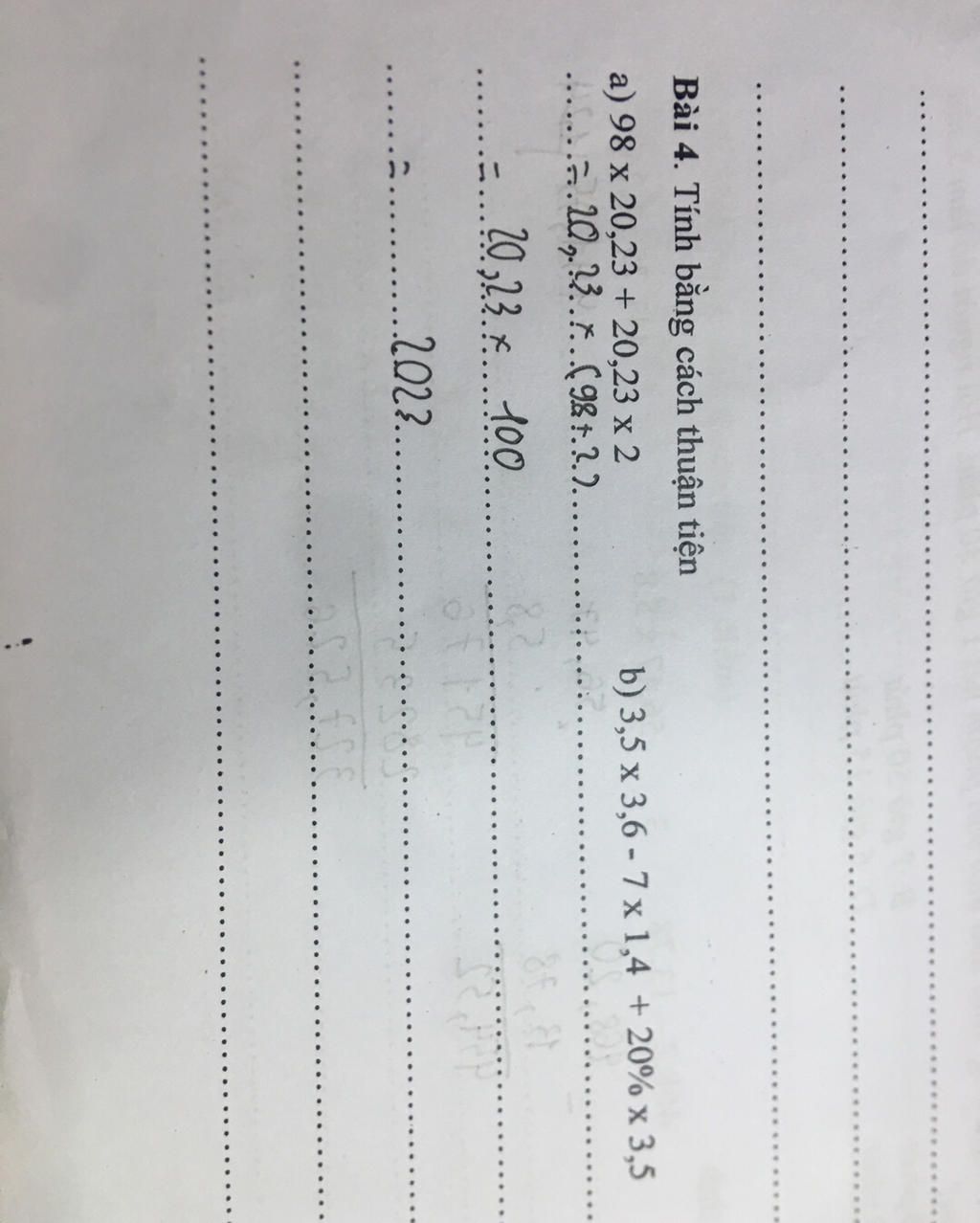 `3,5 xx 3,6 - 7xx 1,4 + 20% xx 3,5`