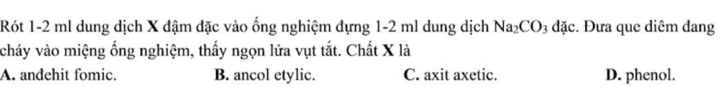 `-` Trong tất cả các đáp án chỉ có $C.Axit \,\, axetic$ là phản ứng với $Na_2CO_3$ tạo $CO_2$ theo phản ứng $acid-baz$