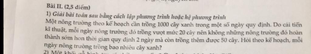Gọi số cây mỗi ngày nông trường đó trồng được theo kế hoạch là `x` cây/ngày `(x ∈ N^**)`