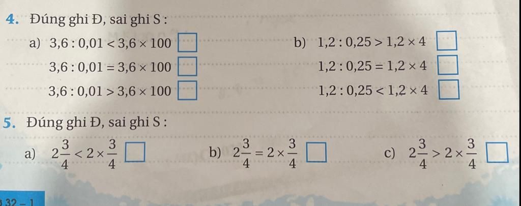 Đáp án:bài 4:a)s b)đ bài 5:a)s