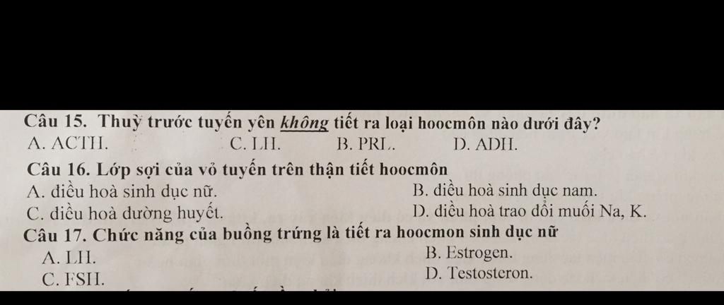 Câu 15: Chọn `D`: ADH