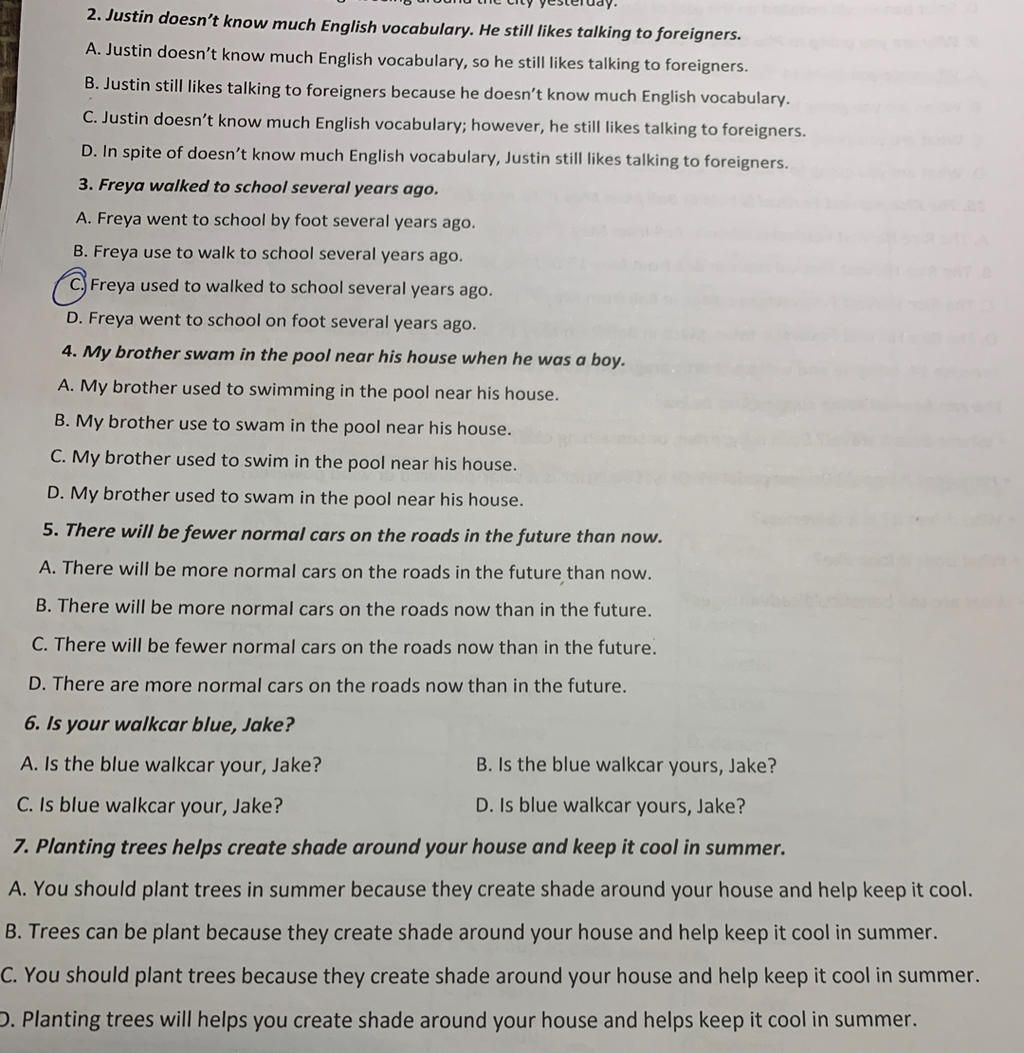 2. Justin doesn't know much English vocabulary. He still likes talking to foreigners.