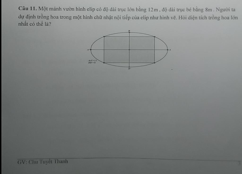 Ta có: Độ dài trục lớn của elip là `12 \ \text(m)`