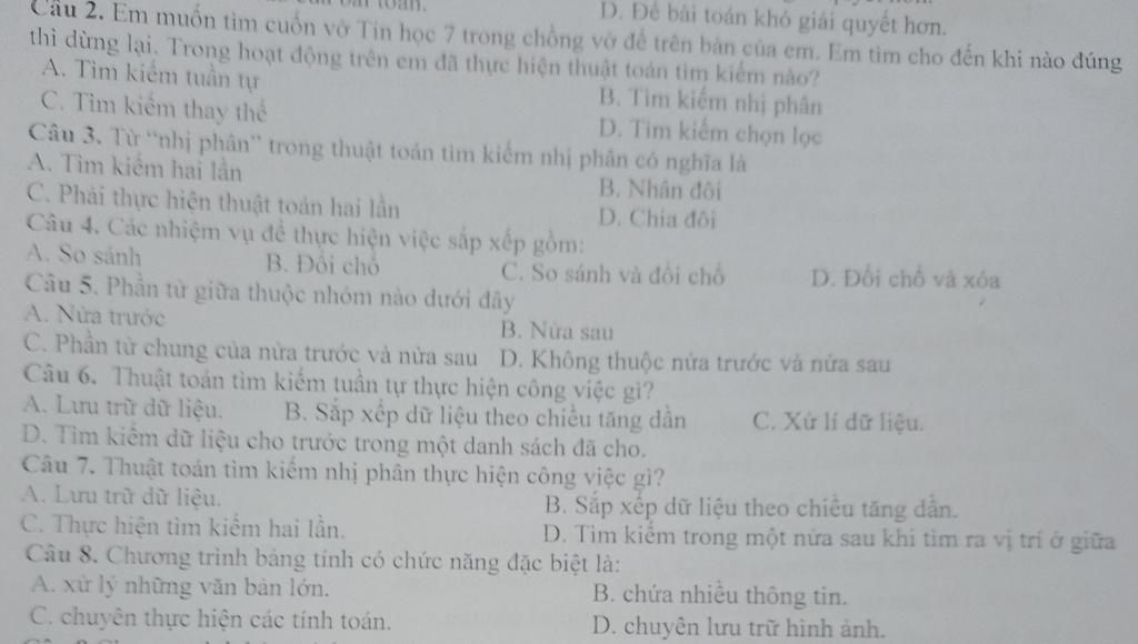 âu 2. Em muốn tìm cuốn vở Tin học 7 trong chống vở để trên bản của em. Em tìm cho đến khi nào đúng