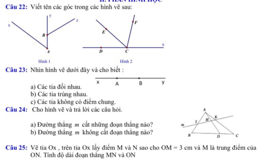 a)Đường thẳng m cắt những đoạn thẳng sau: