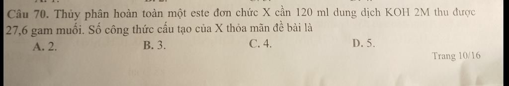 Vậy X có 4 CTCT.⇒ đáp án C