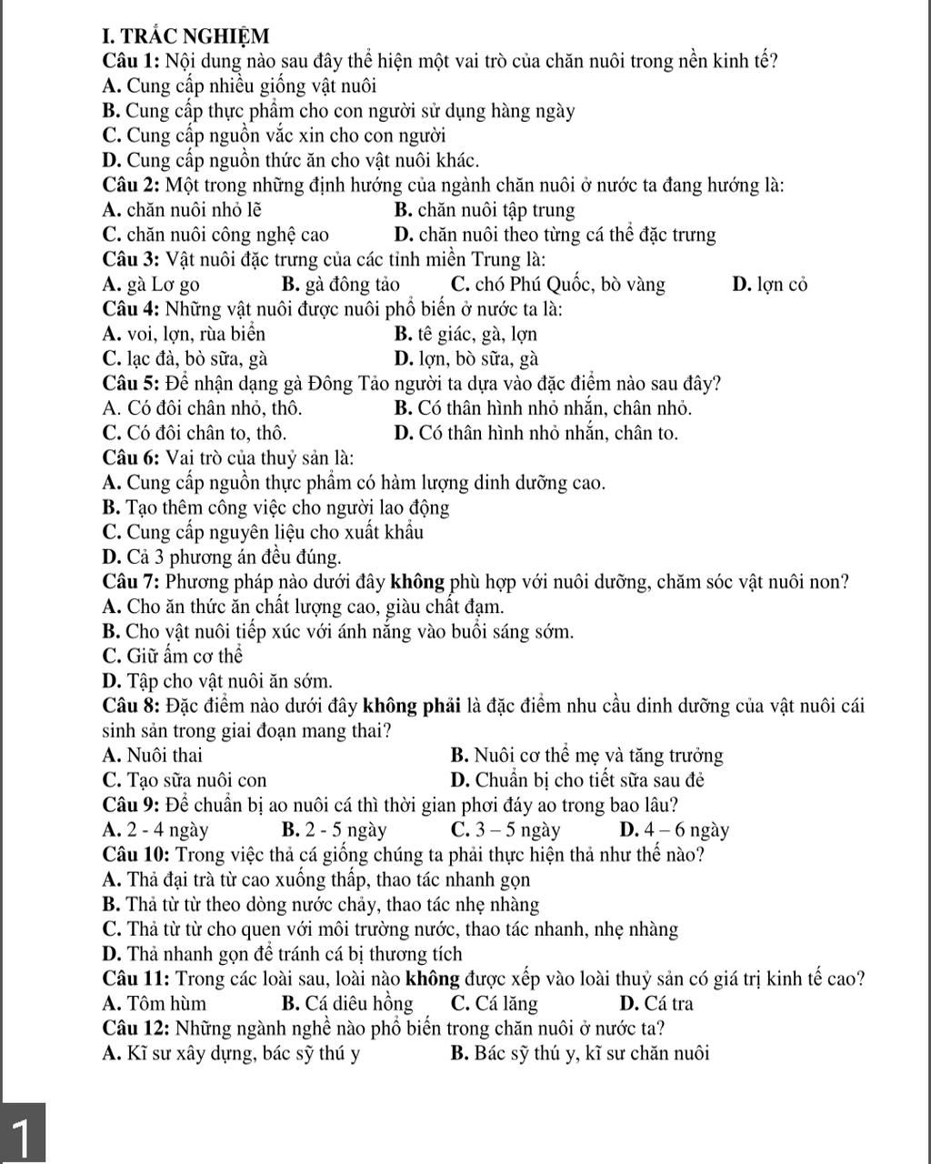 Câu 1 : B