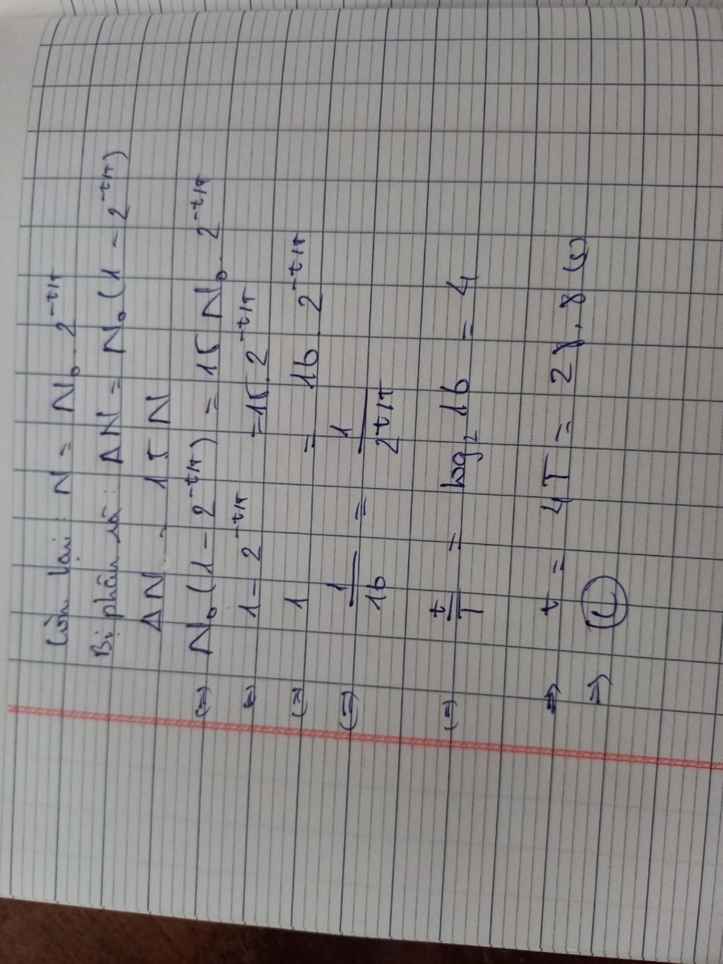 `⇔ 2^{\frac{t}{T}}=2^4 ⇔ t=4T=4.7,2=28,8 \ (s)`
