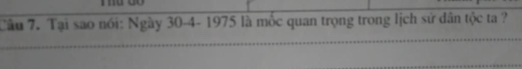 Nói ngày 30-4-1975 là dấu mốc quan trọng trong lịch sử dân tộc ta là vì đó là ngày đánh dấu sự kiện sự thống trị của thực dân Mĩ đã hoàn toàn bị sụp đổ . Mĩ đã thất bại thảm hại trong việc xâm chiến miền Nam ,Việt Nam .Mĩ phải khuất phục trước sự đoàn kết đấu tranh giành lại độc lập của người dân Việt Nam .Ngày 30-4-1975 ,chúng ta dành lại được tự do ,không còn phải sống trong cảnh nô lệ bị áp bức .Hai miền Nam Bắc giờ đây đã thống nhất với nhau chứ không còn bị chia rẽ nữa .Để đánh dấu cột mốc lịch sử quan trọng này ,người dân Việt Nam lấy ngày 30-4 làm ngày kỉ niệm Giải phóng miền Nam thống nhất đất nước .
