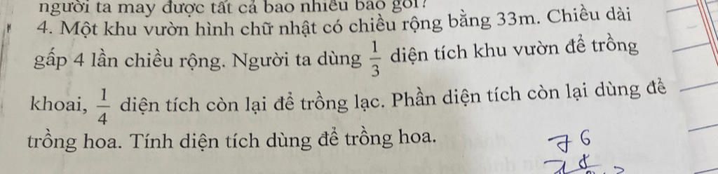 Chiều dài của mảnh vườn hình chữ nhật là: