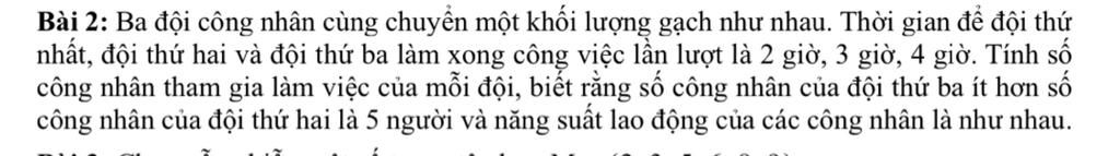 Vậy số công nhân của mỗi đội lần lượt là `30;20;15` công nhân.