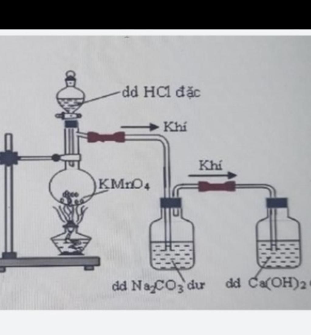 Hiện tượng: màu tím của KMnO4 dần bị mất chuyển thành dd ko màu và có khí màu vàng lục, mùi hắc, nặng hơn ko khí thoát ra