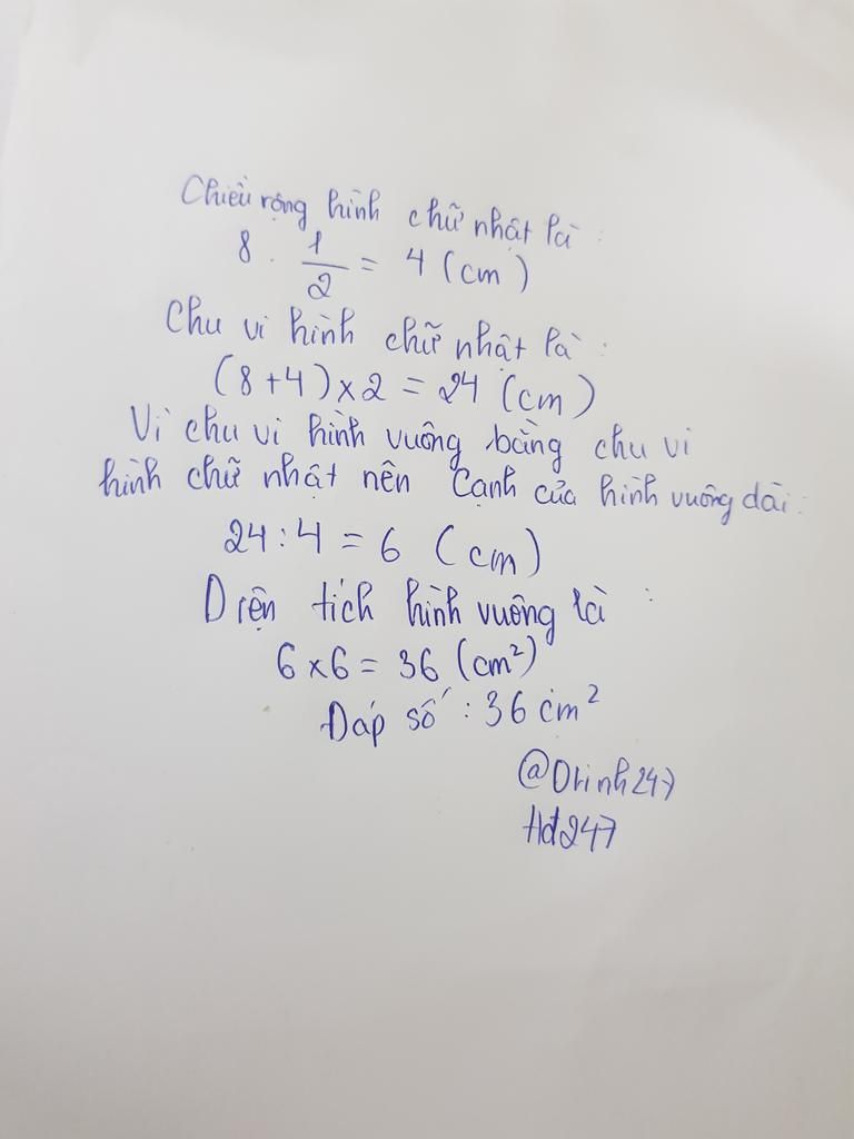 Do hình vuông có chu vi bằng chu vi của hình chữ nhật nên chu vi hình vuông là `24cm`
