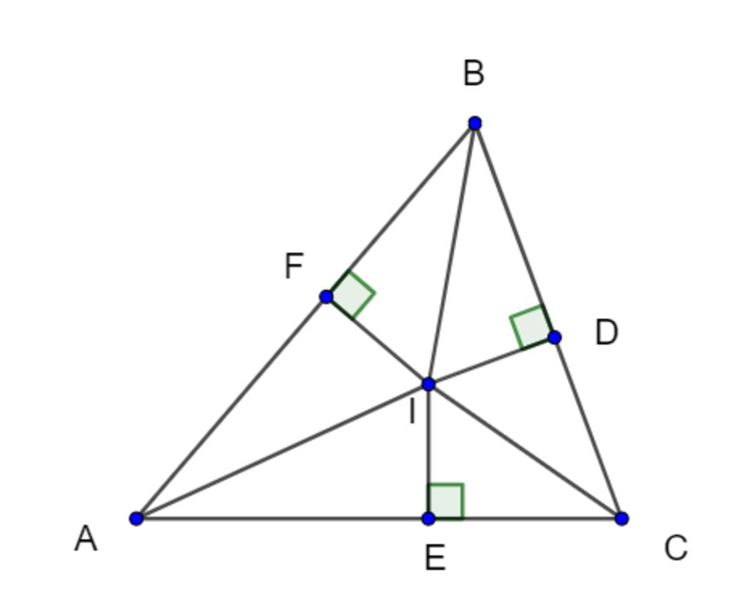 `=> I` là giao điểm ba đường phân giác của `ΔABC`