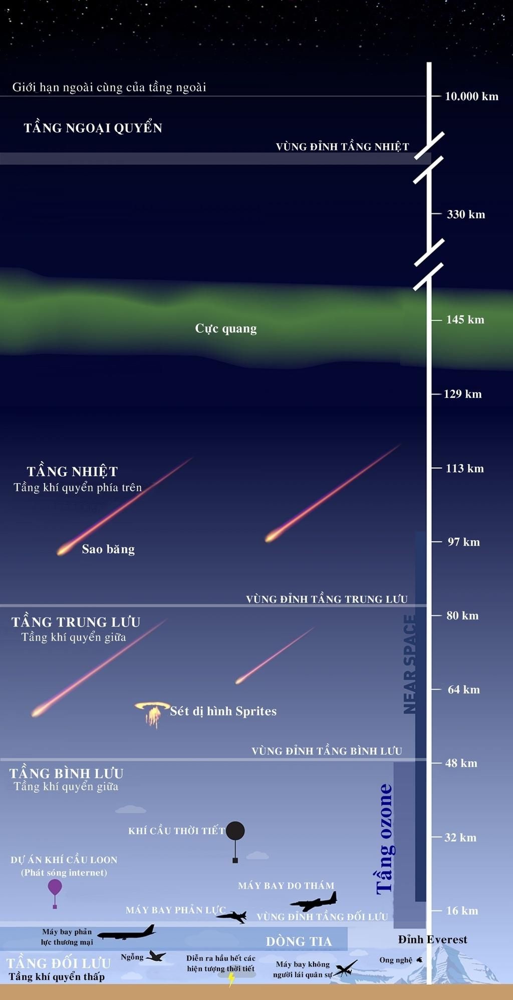 +Tầng đối lưu: từ mặt đất đến 16 km