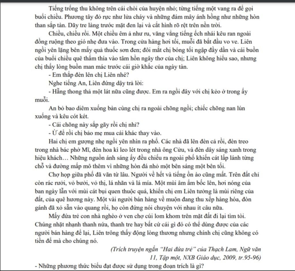 `-` PTBĐ được sử dụng trong đoạn trích : Tự sự, biểu cảm