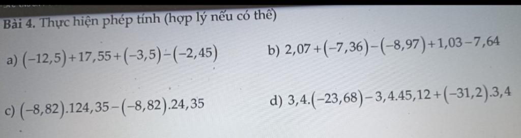 d) 3,4.(-23,68) - 3,4.45,12 + (-31,2).3,4