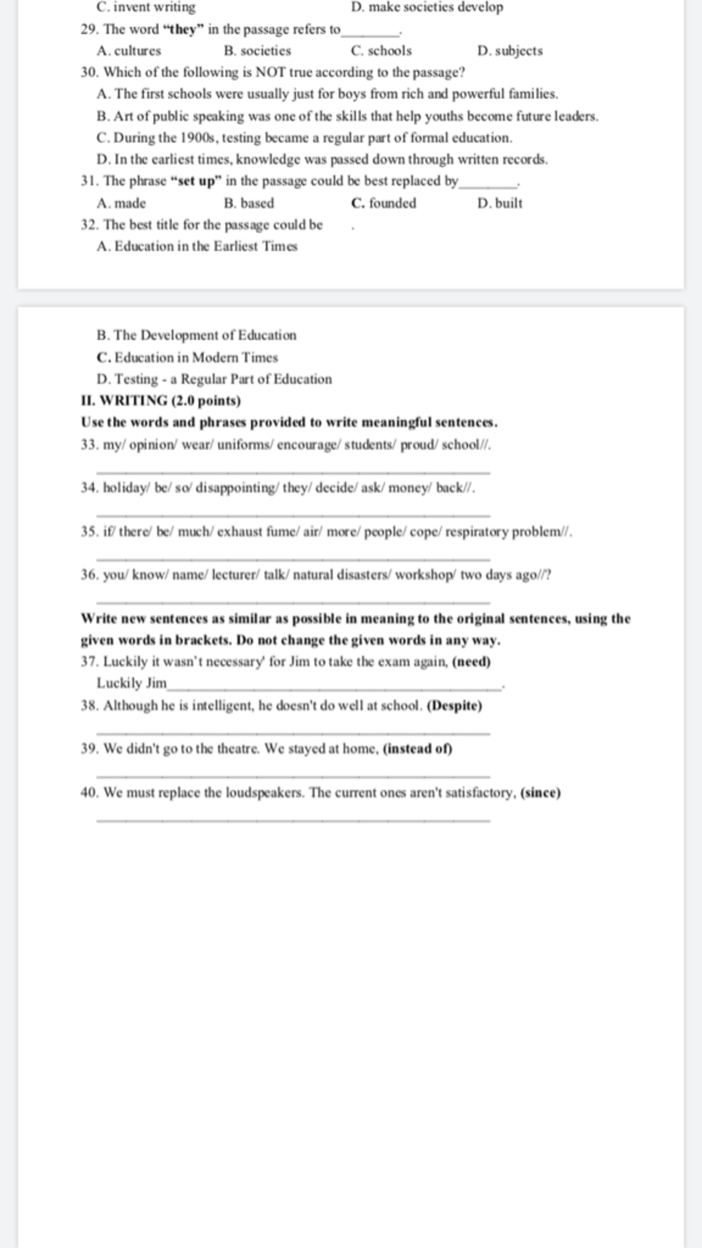 33/My opinion about wear uniforms is encourage students proud of their shcool.