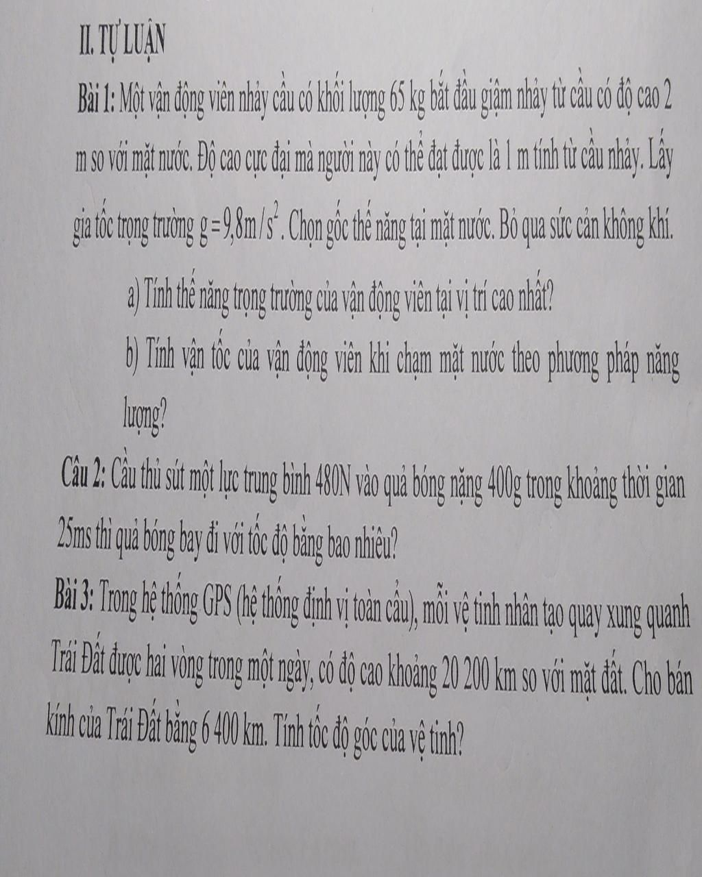 Bài 1: Một vận động viên nhảy cầu có khối lượng 65 kg bắt đầu giậm nhảy từ cầu có độ cao 2
