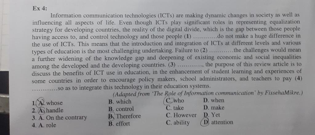 $4.$ $D$ $→$ pay attention (v): chú ý, để ý $→$ to + V(bare): để làm gì đó $→$ S + in order to + V(bare): để mà làm gì $→$ Thì HTĐ: Với động từ thường: $(+)$ S + Vs/es