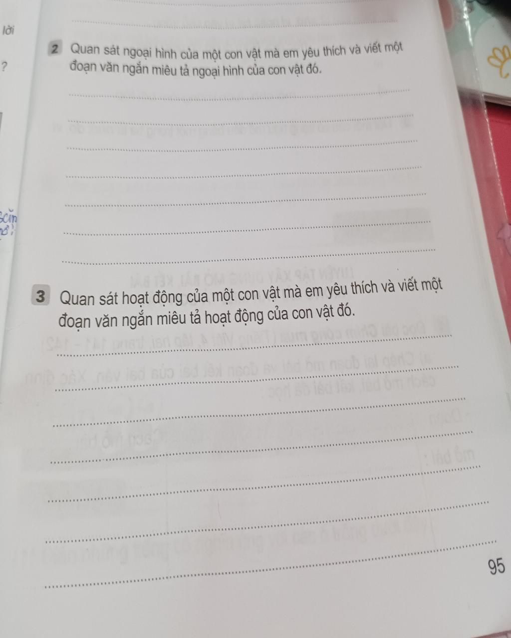 Một lần, em đi cắm trại hè trong một khu rừng. Em cùng các bạn đi tìm cũi, em bắt gặp một chú thỏ con rất đáng yêu. Đôi mắt của chú nhìn chằm chằm em như chú đang cần sự giúp đỡ. Em để ý mới thấy một cái chân của chú bị dính bẫy nên màu chảy khắp nơi. Em nói "các bạn đi tìm cũi còn em sẽ dẫn chú thỏ con này về lều và băng bó cho chú", nói xong em bắt đầu dẫn chú về lều. Đầu tiên, em mở cái bẫy ra khỏi chân chú thật cẩn thận. Tiếp theo, em rửa sạch chân của chú và sát trùng. Cuộc cùng em băng bó cái chân lại cho chú. Chú mừng rỡ và nhảy vào người em.
