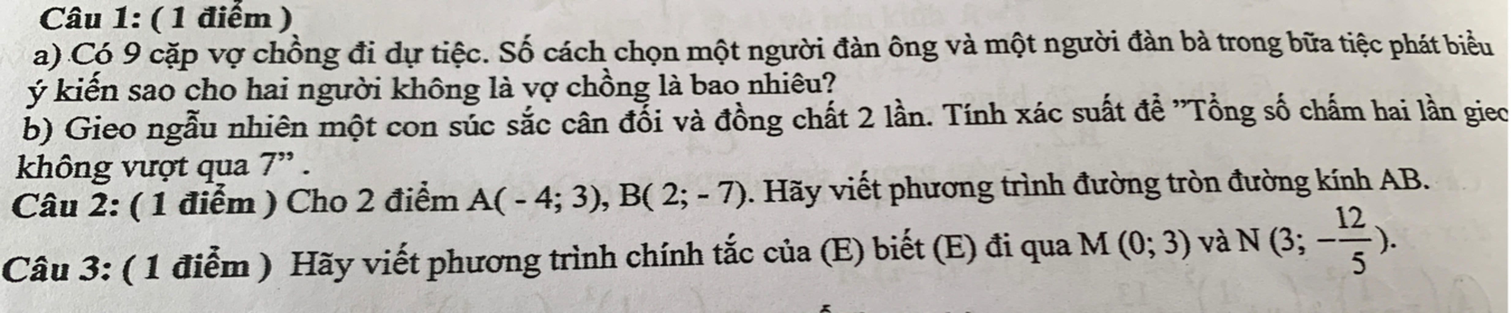 Câu 3: $(E):\dfrac{x^2}{5^2}+\dfrac{y^2}{3^2}=1$
