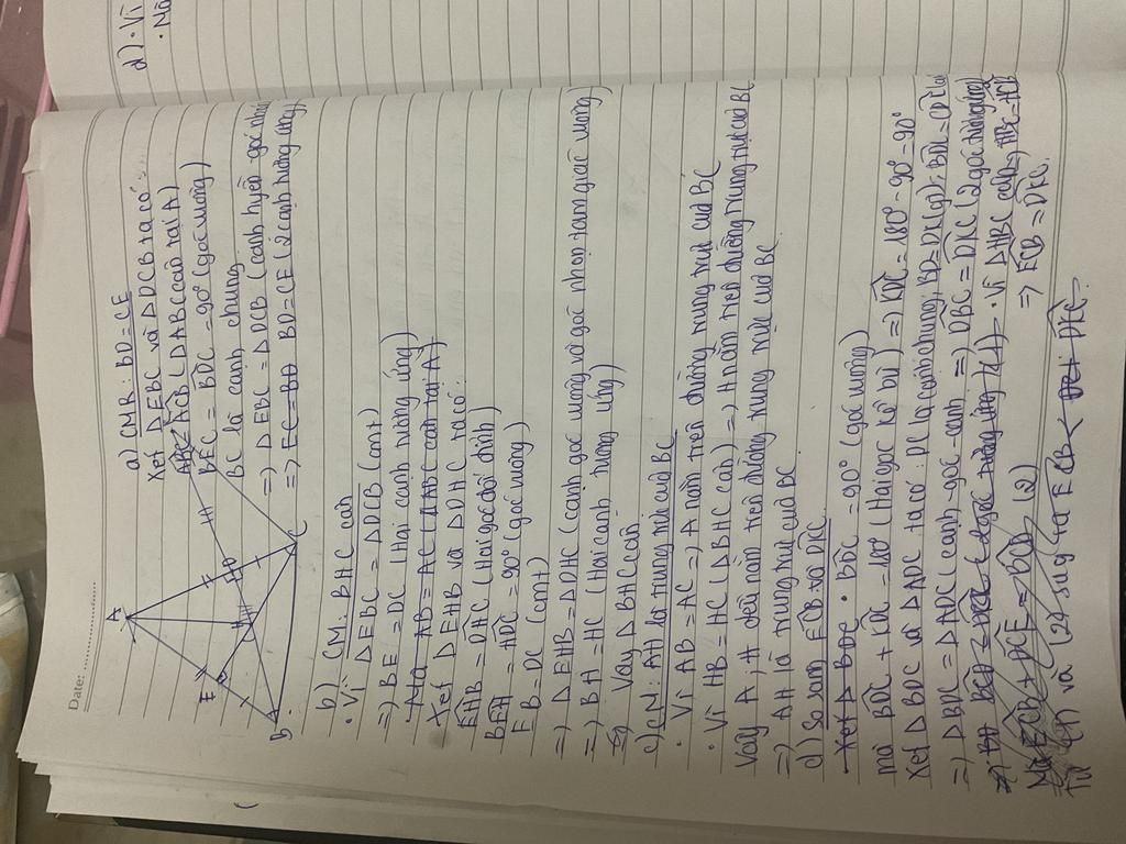 Hình tự vẽ a) Xét tam giác BEC và tam giác CDB có