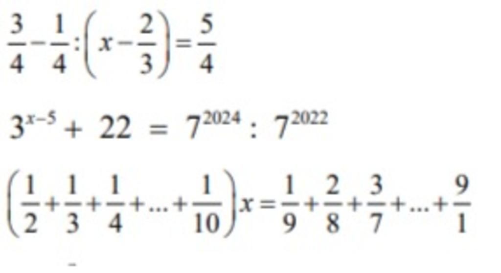 `3/4 - 1/4 : (x-2/3) = 5/4`