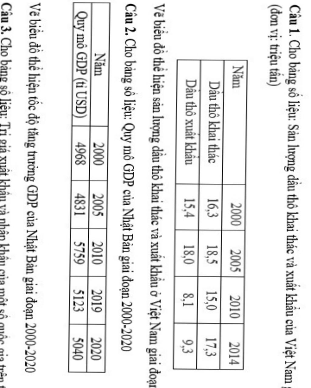 Câu 1. Cho bảng số liệu: Sản lượng dầu thô khai thác và xuất khẩu của Việt Nam