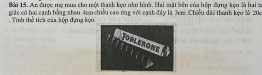 Bài 15. An được mẹ mua cho một thanh kẹo như hình. Hai mặt bên của hộp đựng kẹo là hai ta