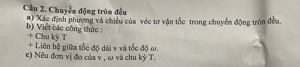 `a,` Vecto vận tốc trong chuyển động tròn đều có:
