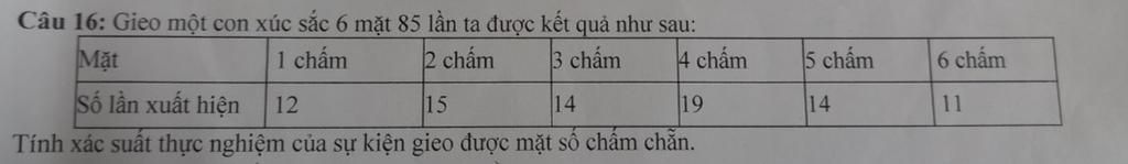 Đáp án`:` Xác suất thực nghiệm `:9/17`