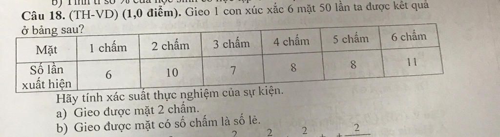 A. Tính xác suất thực nghiệm mặt 2 chấm :