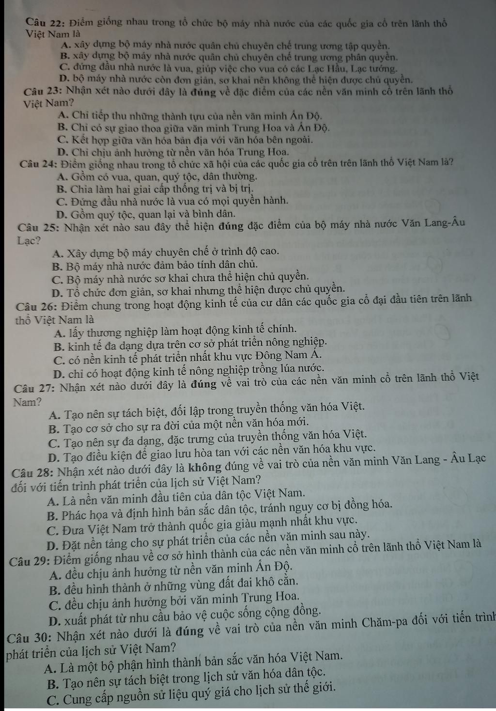 Câu 22: Điểm giống nhau trong tổ chức bộ máy nhà nước của các quốc gia cổ trên lãnh thổ