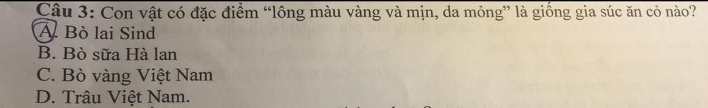 Trong các con vật trên, chỉ có bò vàng Việt Nam là có các đặc điểm như trên.
