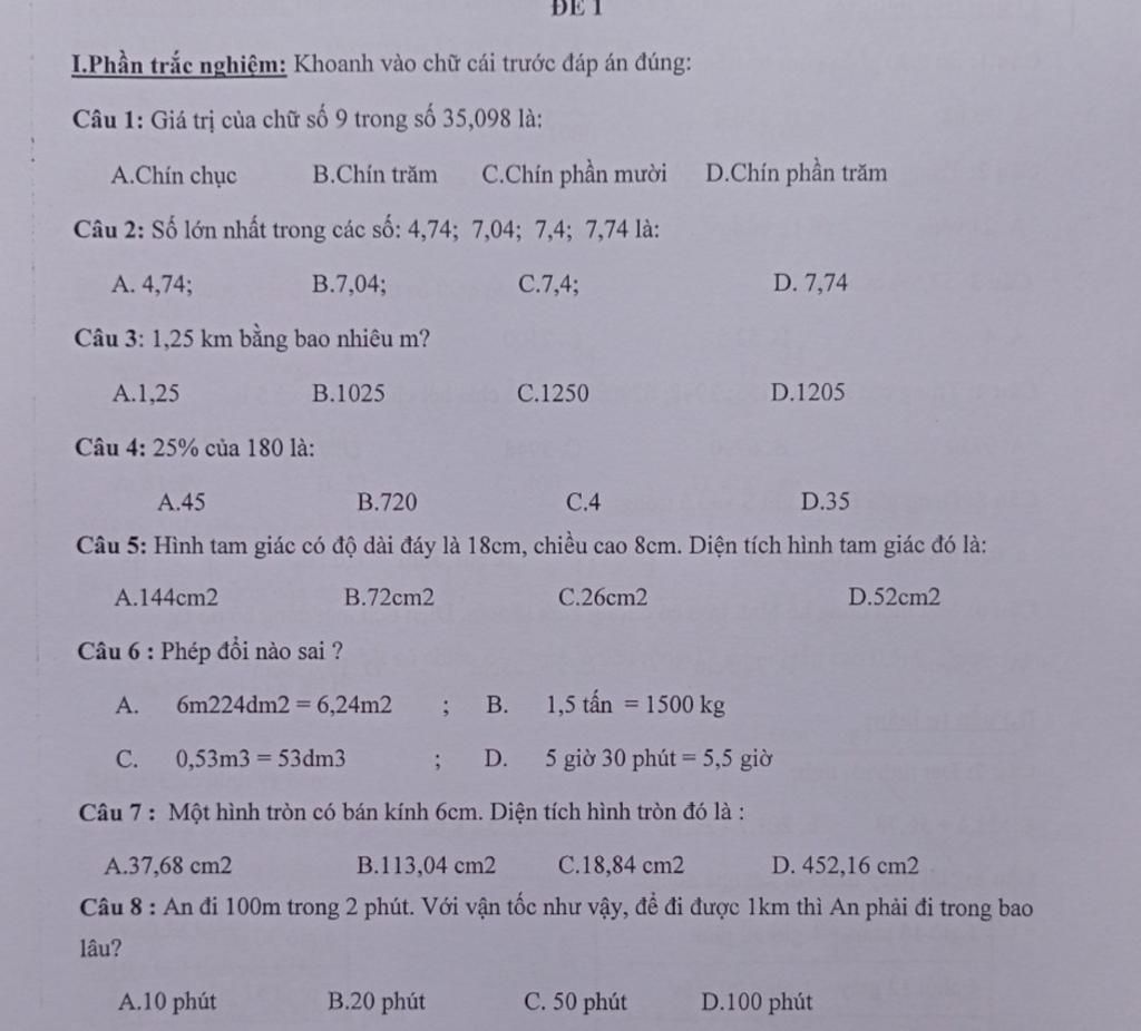 Câu 4: A
