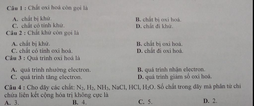 Câu `2:B` chất bị oxi hóa