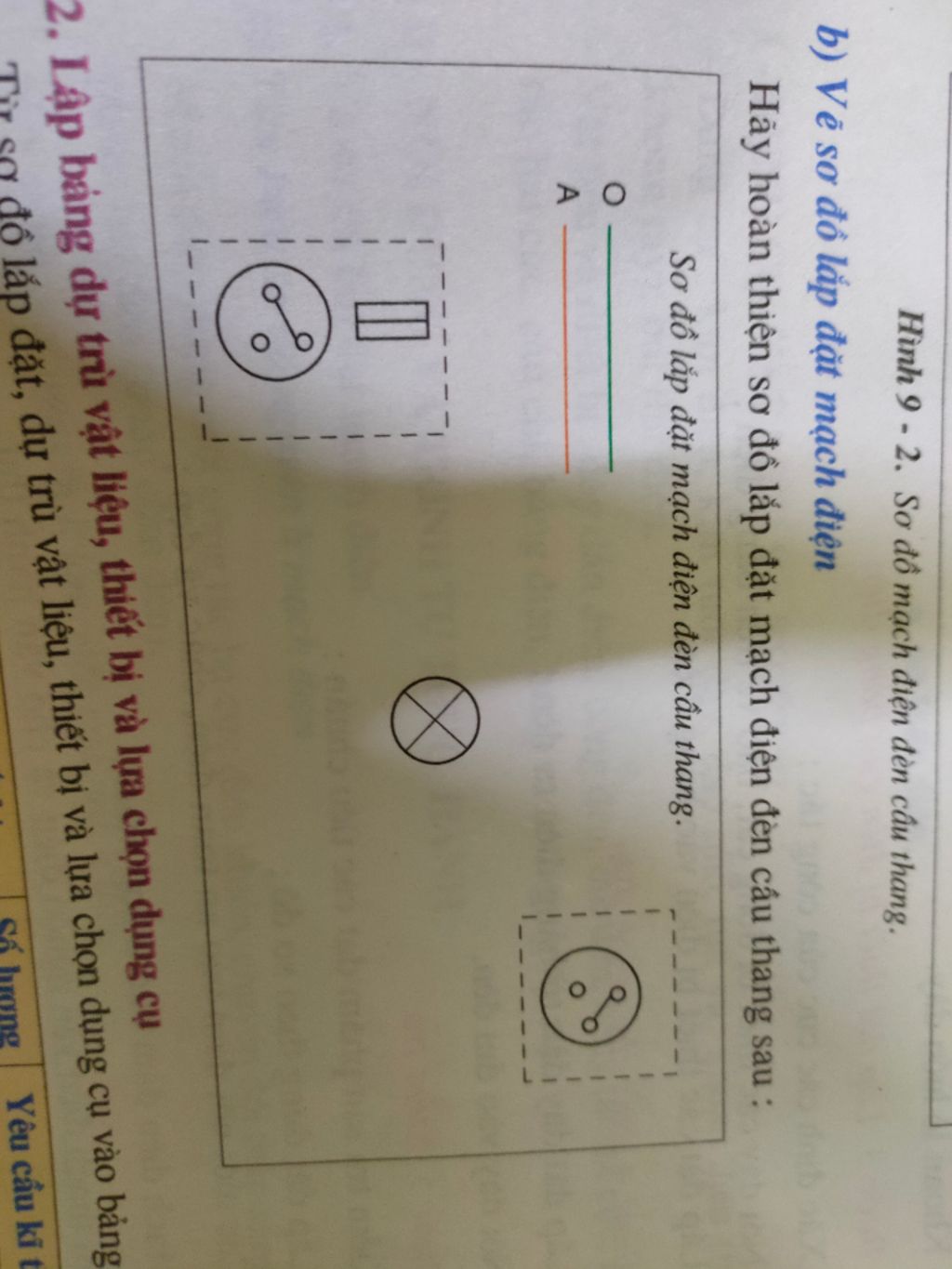Hãy hoàn thiện sơ đồ lắp đặt mạch điện đèn cầu thang sau :