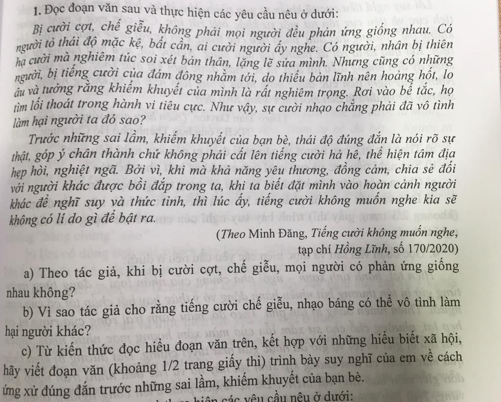 Câu 1 Bị cười cợt chế giễu kh phải mọi người đều phản ứng giống nhau
