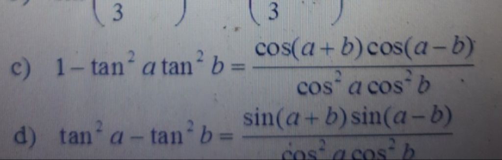 →(1−tanatanb)(1+tanatanb)=cos(a+b)cosacosb.cos(a−b)cosacosb