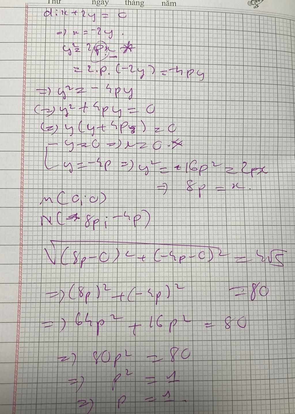 $\to y^2=2x$ hoặc $y^2=-2x$