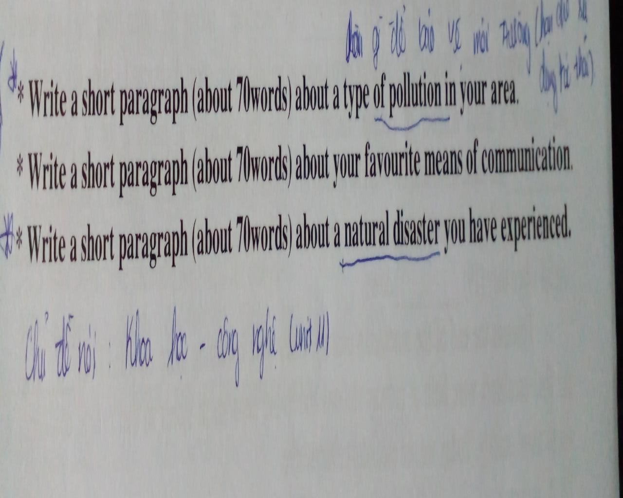 Natural disasters are one of the biggest problems that people have to face nowadays. So does Vietnam, we are against natural disasters. The most common natural disasters in Vietnam are hurricanes. Hurricanes can cause damage to houses and people. A lot of people lost homes so they don’t have a place to live in. Not only that, they also suffer the pain of losing their relatives. According to statistics, the hurricanes in Vietnam made about 230 people die and a lot of people can’t be found. What is more dangerous than it causes a flood? Flooding is also a dangerous natural disaster because it can cause harm like a hurricane... Additionally, it can make the water line polluted and this is one of the causes that make people and animals sick. From these arguments, we can know about the harmfulness of hurricanes and floods so I will tell you some ways to prevent hurricanes and floods. First, you should always update the news about the hurricanes. Second, you should prepare essential things such as water, food, clothes, medicines, first-aid kits,...Third, we should reinforce our house and always be ready to evacuate. In conclusion, I can say that natural disasters are extremely dangerous, but we can prevent them by doing what I say.