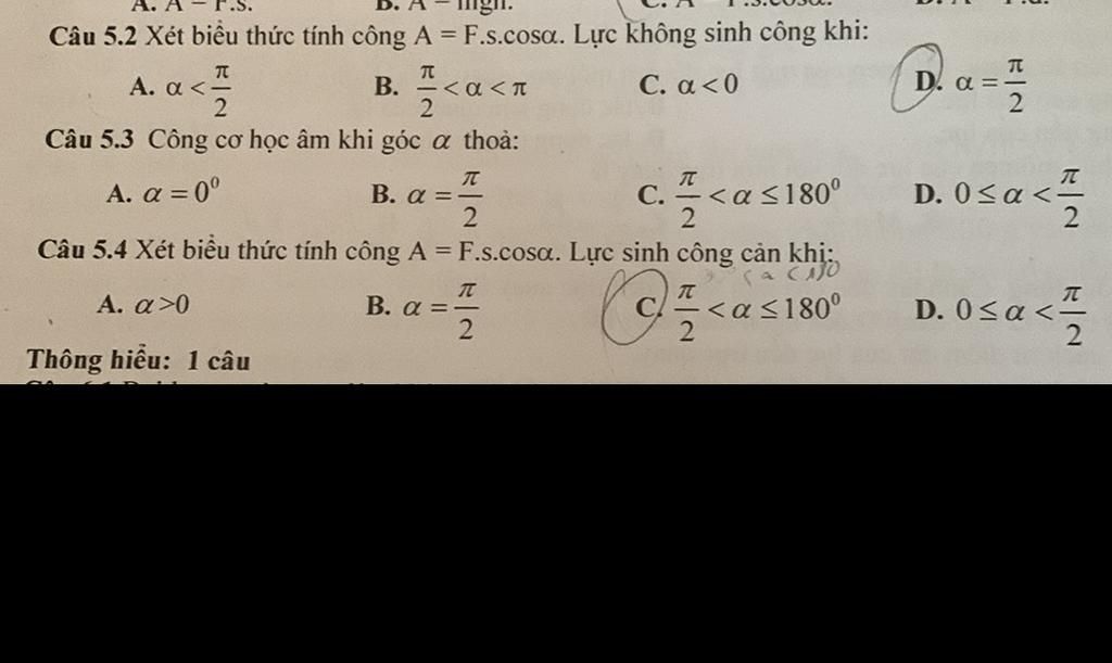 Ta biết công cơ học mà âm (công cản)$\Rightarrow A<0\Rightarrow90^o<\alpha\leq 180^o$