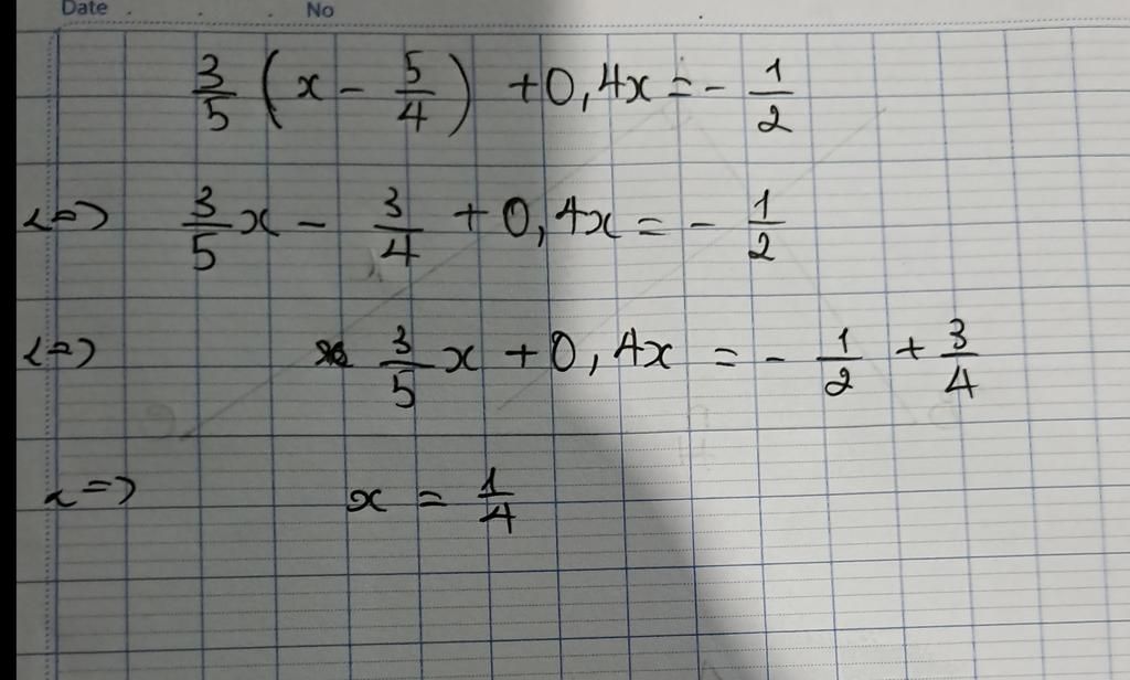 `=>3/5 x-3/4 +0,4x=-1/2`